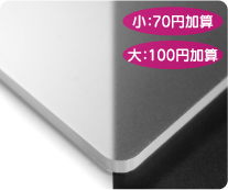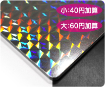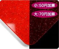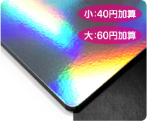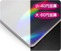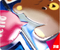 | 印刷面にクリアコート 印刷部分に光沢っと厚みのあるクリアインクでコーティングします 小サイズ:1個30円加算 大サイズ:1個40円加算 1営業日加算 |