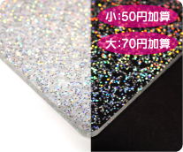 | 材 質 | [本体] アクリル板3mm:透明/カラー/透明ホログラム/ホログラム/ラメ/メタルチップ |