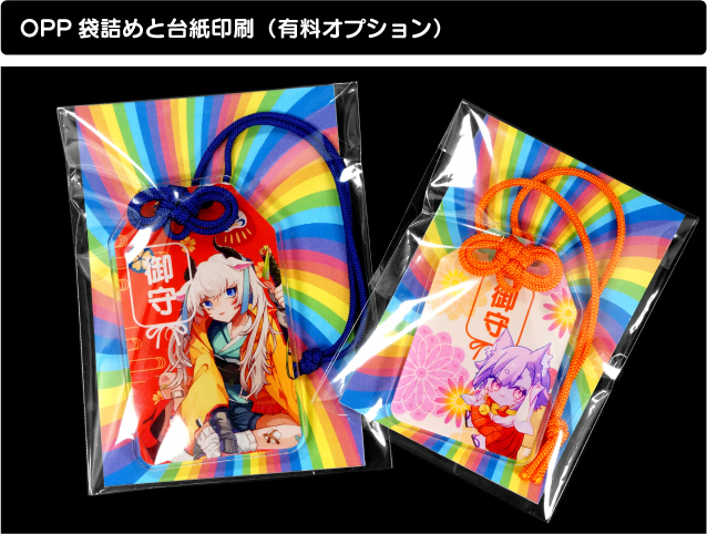 | TOP>>グッズ>>アクリルお守り>>OPP袋詰めと台紙印刷 |