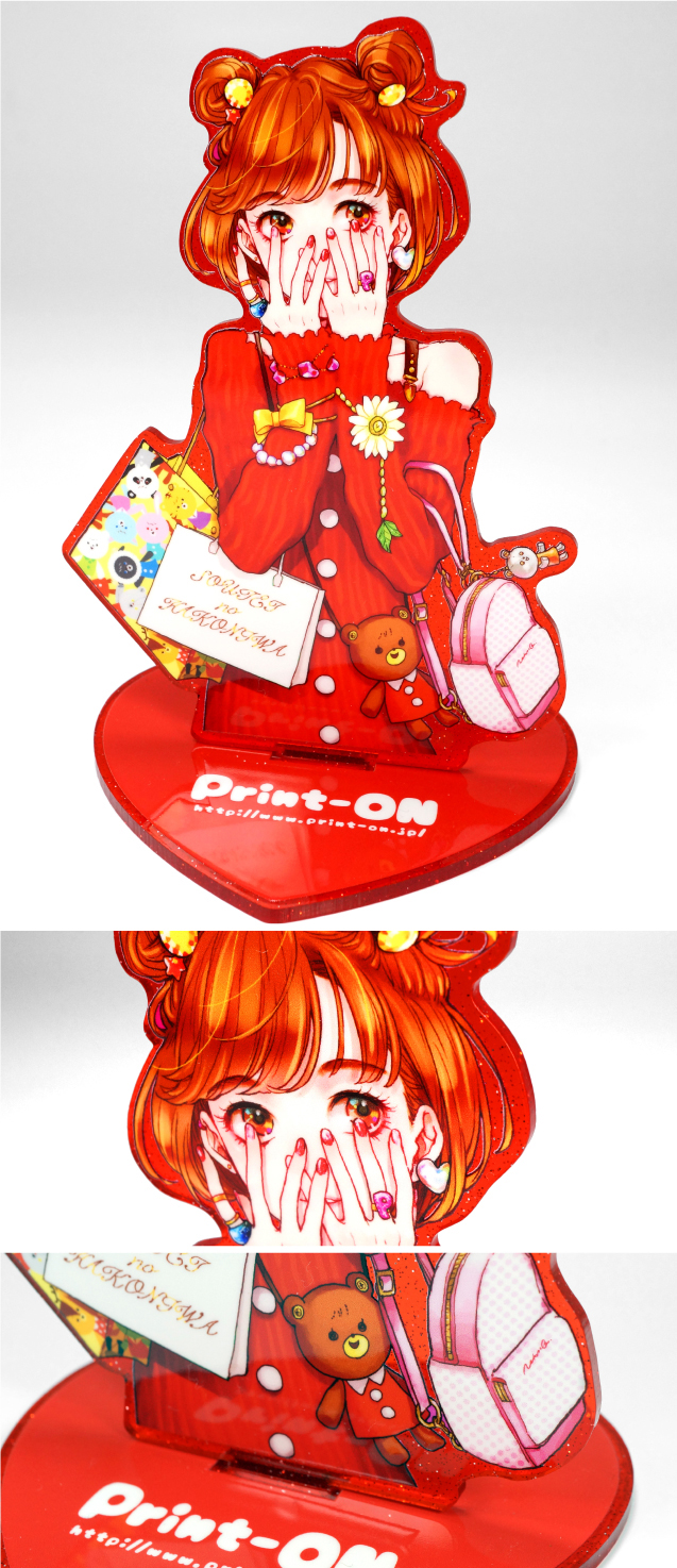 Lサイズ/ラメアクリル レッド/フルカラー+白印刷/台座の形状:ハート |