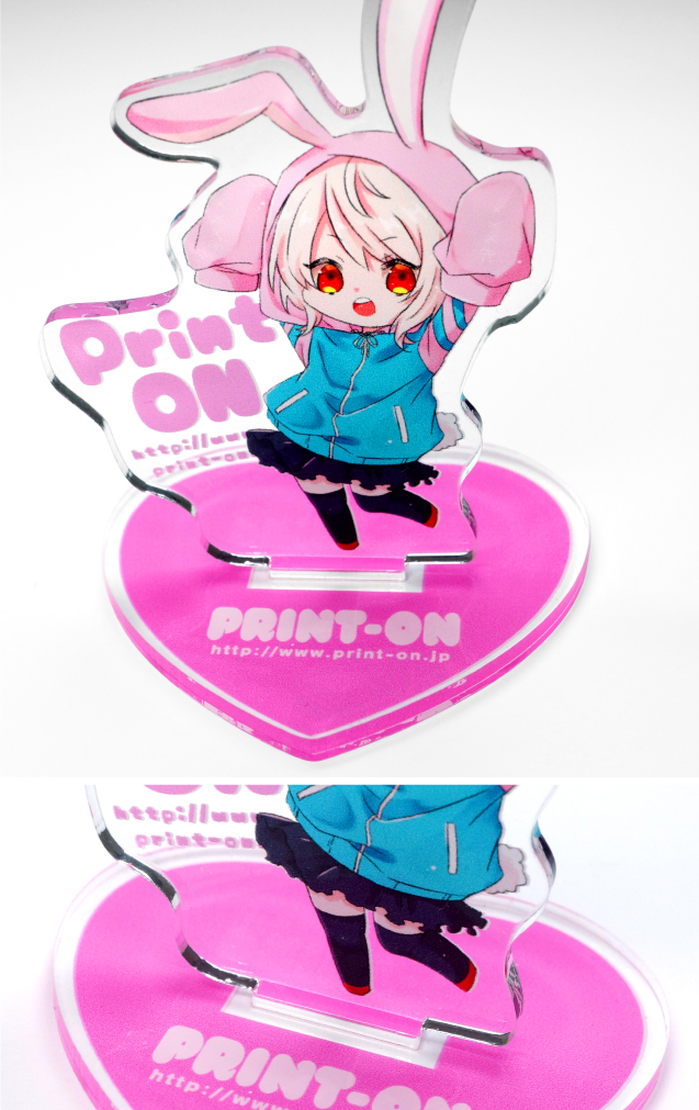 Sサイズ/透明アクリル/フルカラー+白印刷/台座の形状:ハート |
