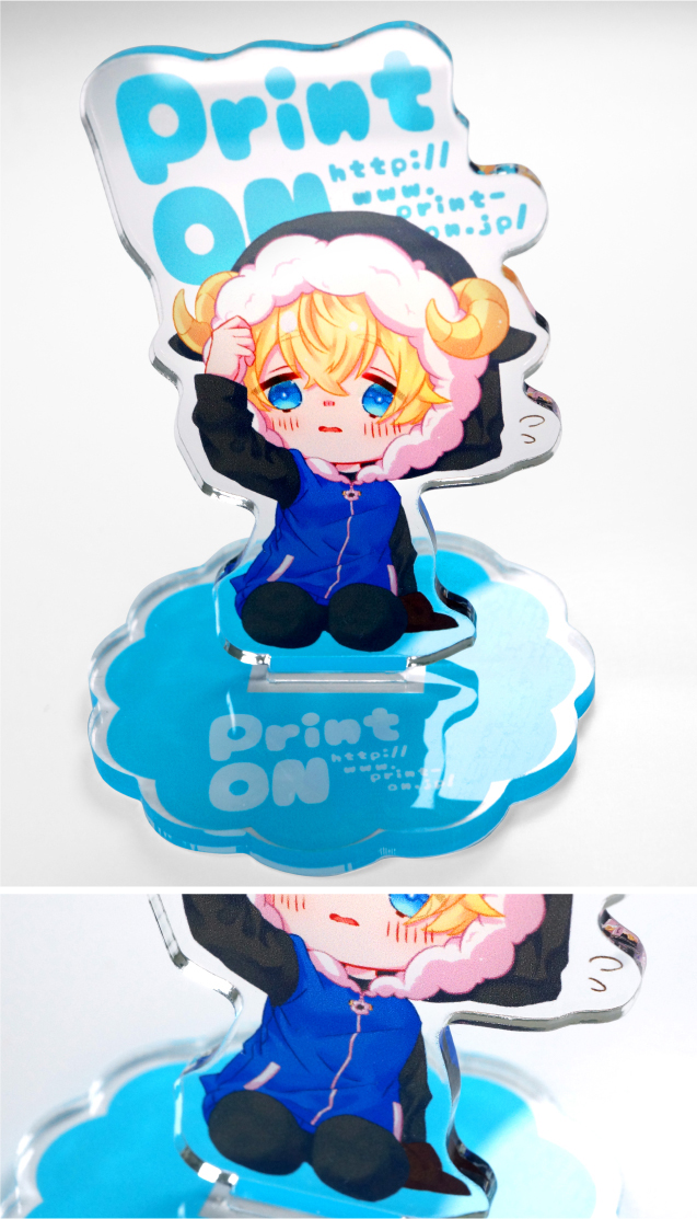 Sサイズ/透明アクリル/フルカラー+白印刷/台座の形状:クラウド |