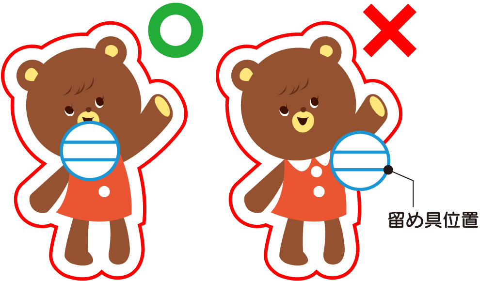 カットラインのおまかせは、絵柄の2ミリ外側、安全ピン位置は絵柄の中央付近に配置します。 |