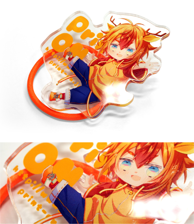 | Sサイズ/透明アクリル/片面印刷(フルカラー+白印刷) ヘアゴムの色:ネオンオレンジ |