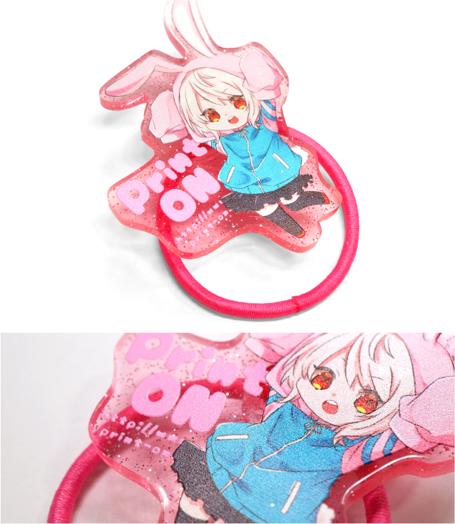 | SSサイズ/透明アクリル/片面印刷(フルカラー+白印刷) ヘアゴムの色:ネオンピンク |
