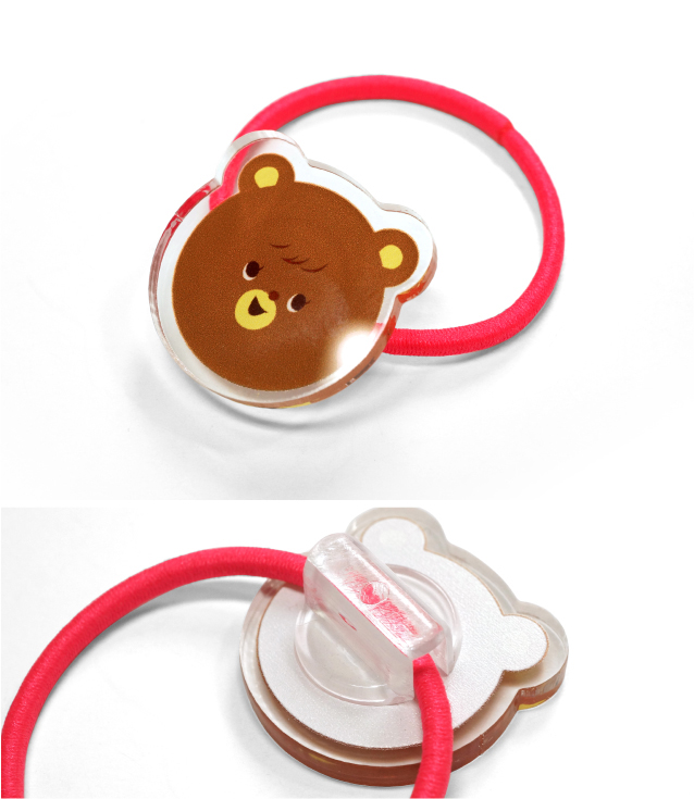 | Sサイズ/透明アクリル/片面印刷(フルカラー+白印刷) ヘアゴムの色:ホットレッド |