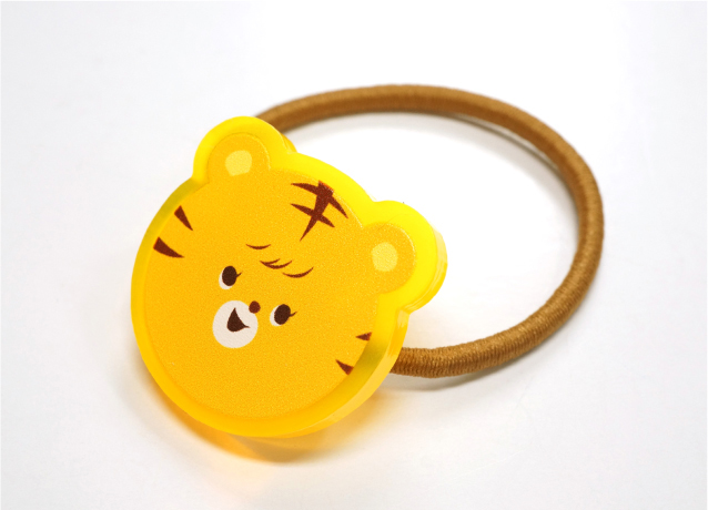 | SSサイズ/カラー透明アクリル マットイエローオレンジ/片面印刷(フルカラー+白印刷) ヘアゴムの色:ミディアムブラウン |