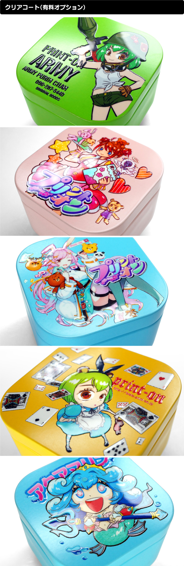 | TOP>>グッズ>>ブリキ缶ケース>>印刷面にクリアコート |