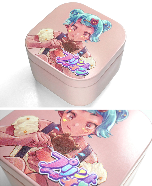 ブリキ缶ケース/ライトピンク/フルカラー(CMYK)+白印刷 |