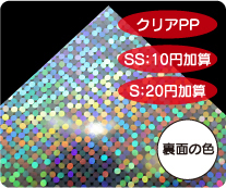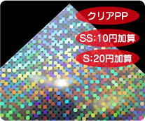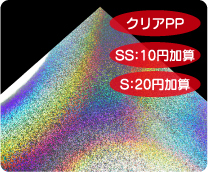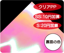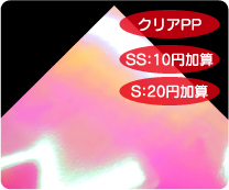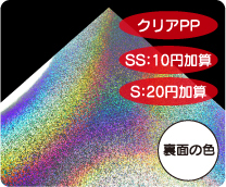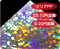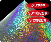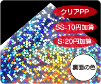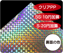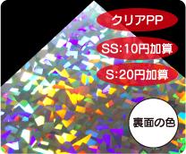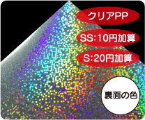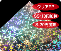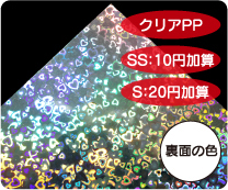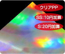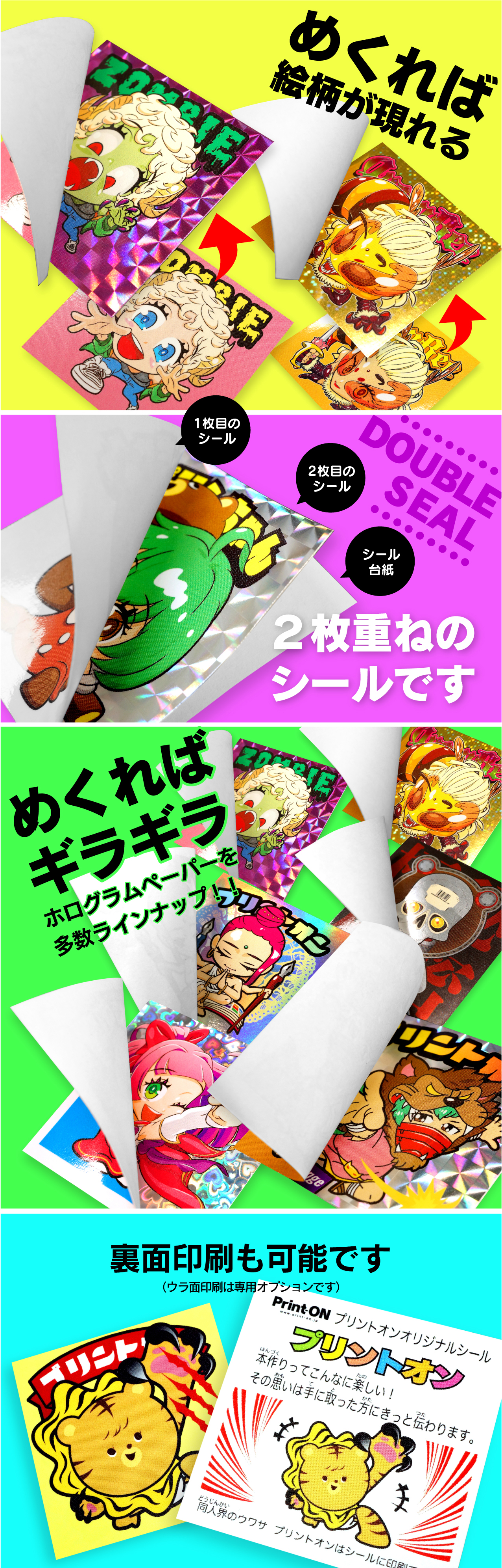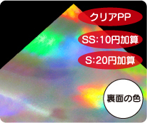 めくれば絵柄が現れる2枚重ねのシールです。 シール用紙は多彩なホログラム紙から選択可能です。 |