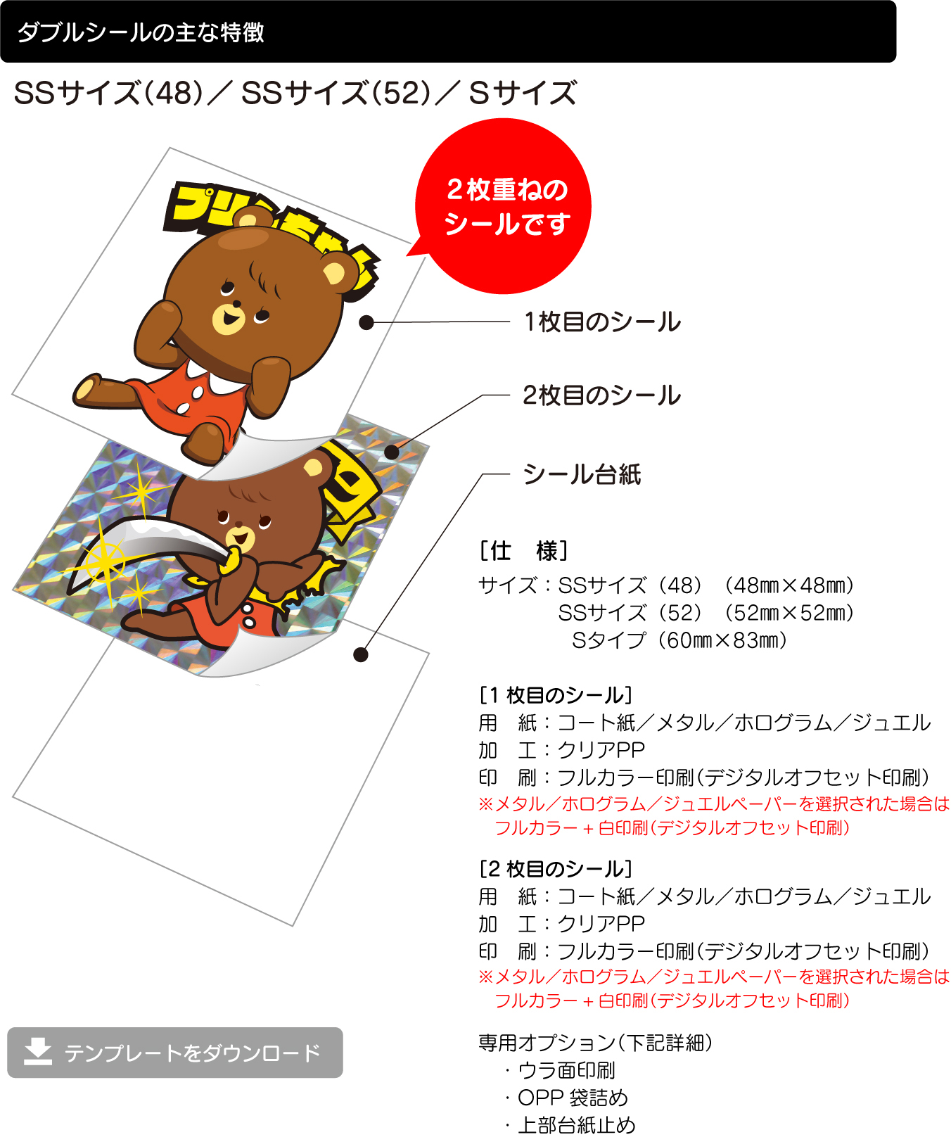 | テンプレート | [ダブルシールテンプレート(.psd)] |