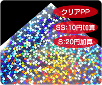 上部台紙止め 台紙に絵柄を印刷出来ます 台紙を二つ折りにしてOPP袋を 挟んで上部をホチキス止めします 1枚40円加算 2営業日加算 |