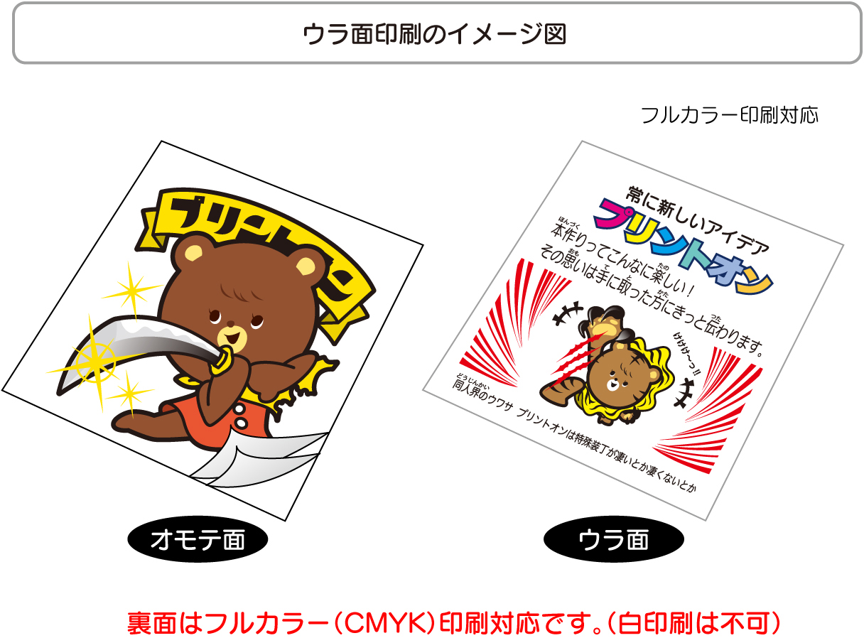 | ウラ面印刷(全サイズ共通) | +1営業日 | 30円加算 |