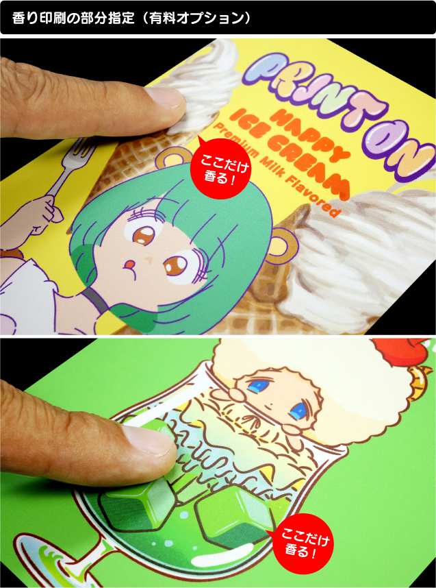 | 香り印刷の部分指定 | +1営業日 | 1,000円加算 (固定) |
