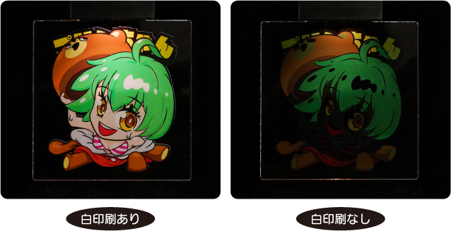 | 白+フルカラー印刷をご利用の場合、白印刷がない部分は光が極端に弱くなってしまいます。目立たせたい部分、光らせたい部分には白を引いてください。 |