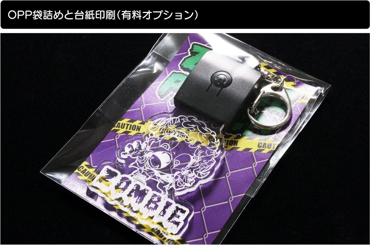 | TOP>>グッズ>>LEDアクリルキーホルダー>>OPP袋詰めと台紙印刷 |