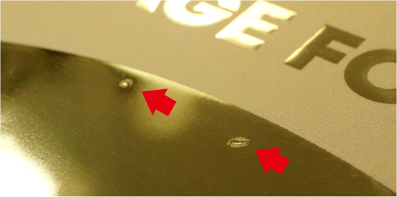 | ホコリや微細なゴミが箔フィルムの下に入ってしまい目立ってしまいます。 |