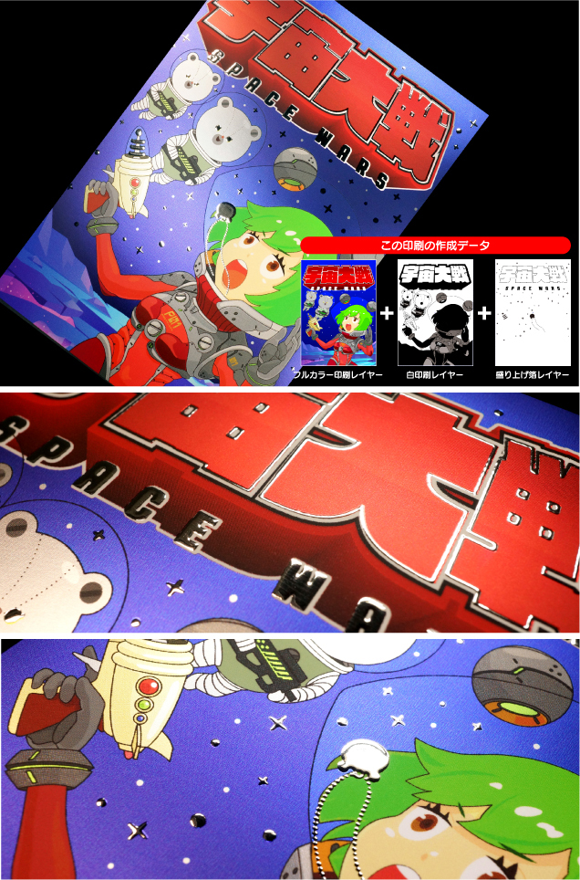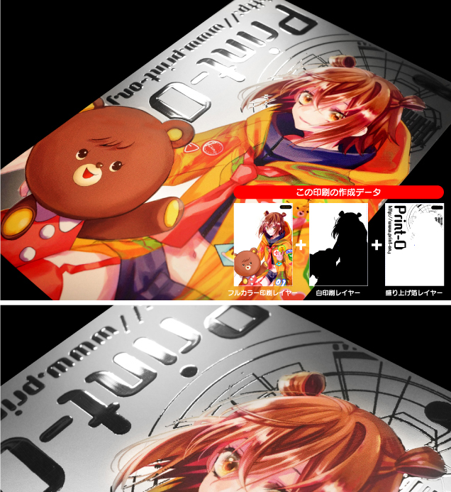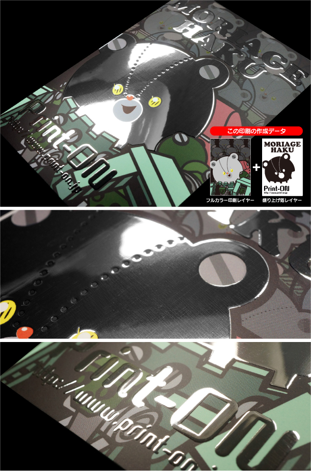 | メタルペーパー165kgシルバー/フルカラーRGB+白印刷/マットPP 盛り上げ箔加工:シルバー |