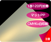 | 表紙印刷をフルカラーRGB印刷に変更できます。 マイページからご注文時に仕様選択画面で「印刷:フルカラーRGB印刷」を選択して下さい。 ※入稿データはRGBデータのままご入稿下さい。 ※メタル・ホログラムペーパーの白印刷が付いているものは、「フルカラー(CMYK)+白印刷」から 「フルカラーRGB+白印刷」への変更となります。 |