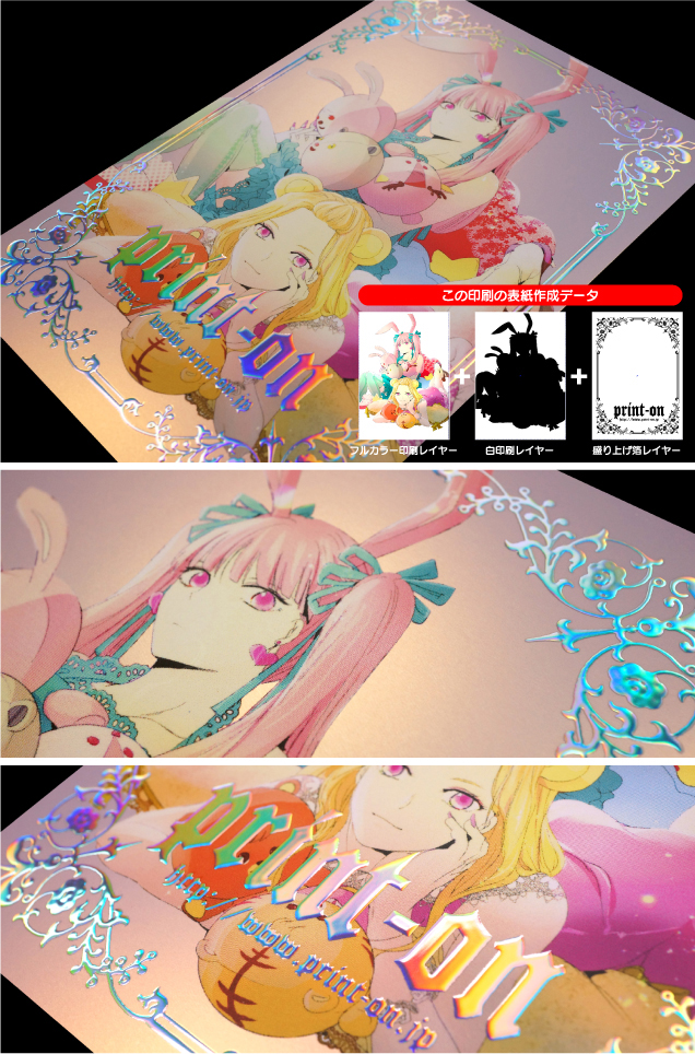 | おとぎのくに200kgこいするせかい/フルカラーRGB+白印刷/マットPP 盛り上げ箔加工:レインボーシルバー |
