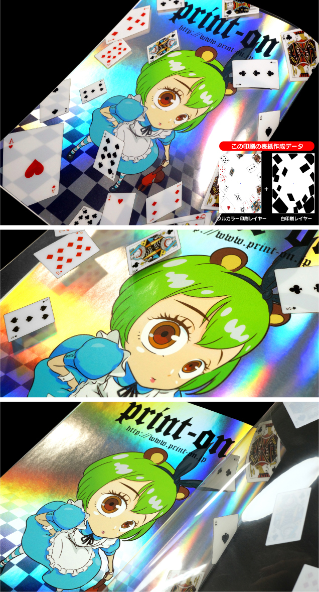 | 中表紙にホログラムペーパー110kgクリスタルを使用しています。 |