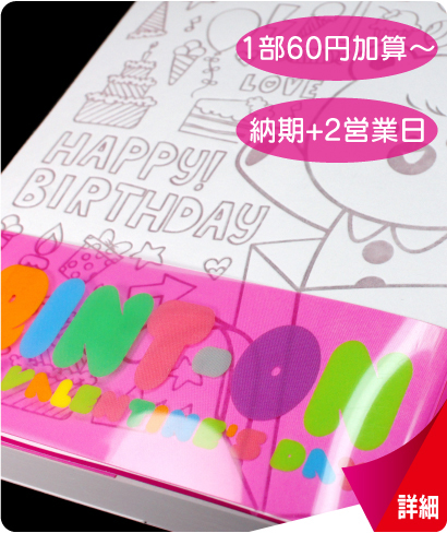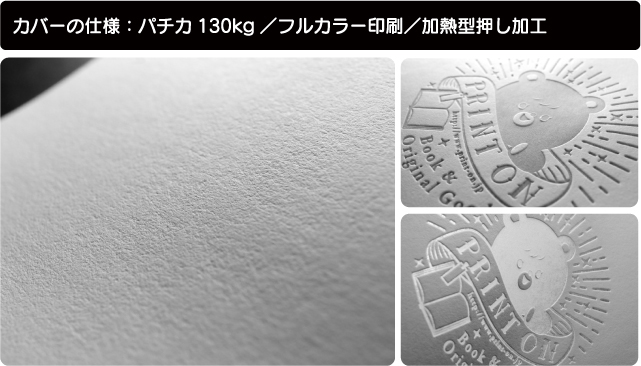 | 専用オプション | ・フルカラー帯 ・加熱型押し加工:2回目 ・カバーのみ変型断裁 ※上記以外の仕様につきましてはお問い合わせください。 |