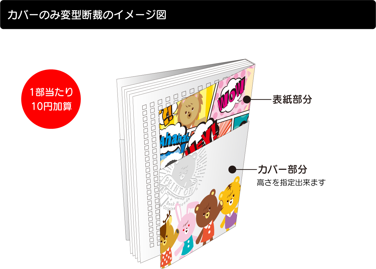 カバーのみ短く断裁することができます。短くなった部分から表紙が見えるように |