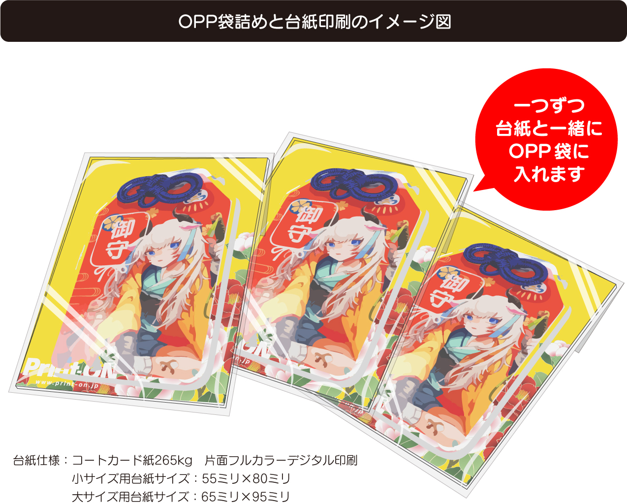 | TOP>>グッズ>>アクリルお守り>>OPP袋詰めと台紙印刷 |