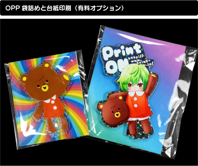 | TOP>>グッズ>>アクリルスタンド>>OPP袋詰めと台紙印刷 |