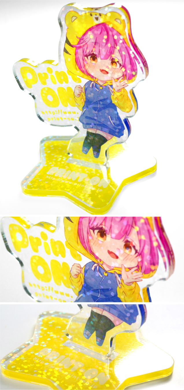 Sサイズ/透明ホログラムアクリル スパーク/フルカラー+白印刷/台座の形状:星 |