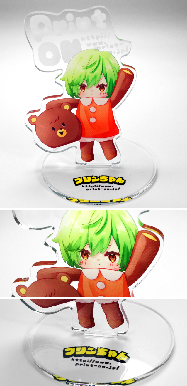 Sサイズ/透明アクリル/フルカラー+白印刷/台座の形状:楕円 |