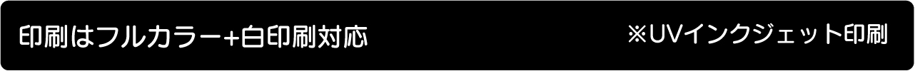 印 刷 | 片面:UVインクジェット印刷(CMYK+白) 別途料金でクリアコートも可能です。 |