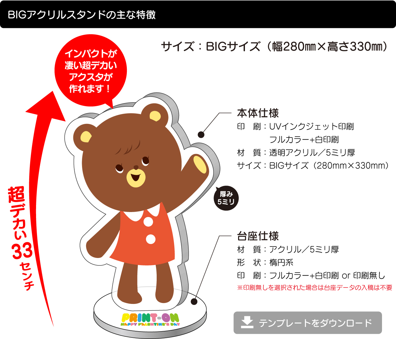 高さ33センチの超BIGなアクリルスタンドが作れます。 |