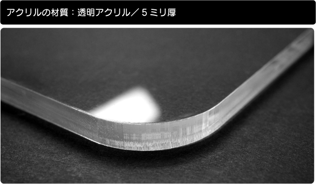 | 厚みがある透明アクリル(5ミリ厚)を使用しますので丈夫で重厚感があります。 |