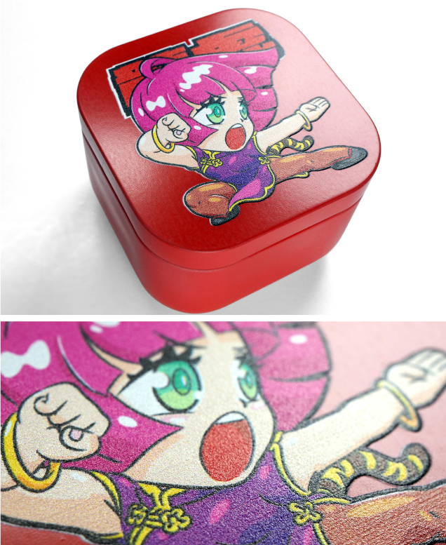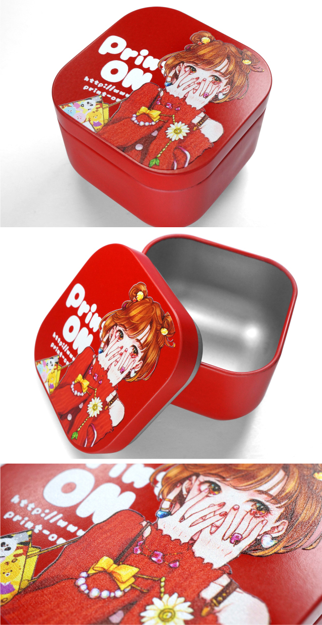 ブリキ缶ケース/レッド/フルカラー(CMYK)+白印刷 |