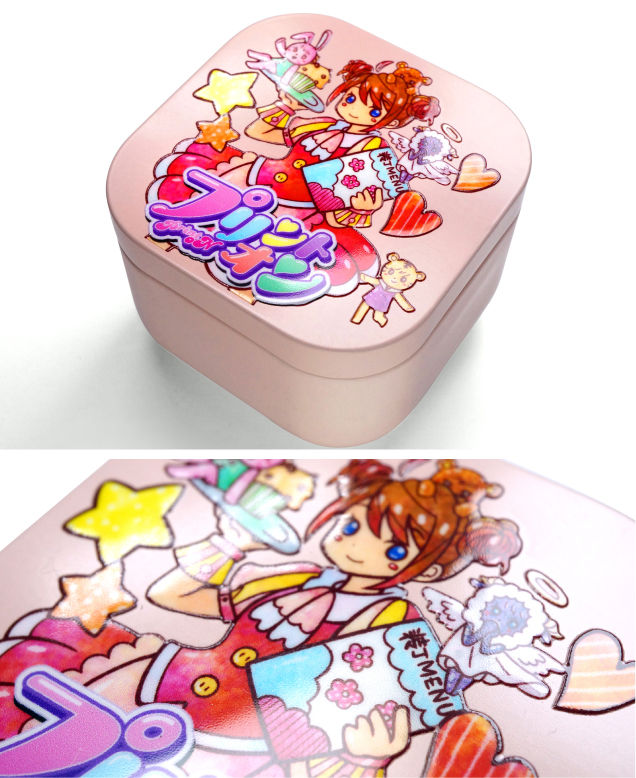 ブリキ缶ケース/ライトピンク/フルカラー(CMYK)+白印刷 |