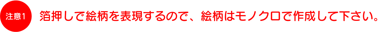 | 箔押しする部分をスミ100%で作成して下さい。グレーは表現不可。 |