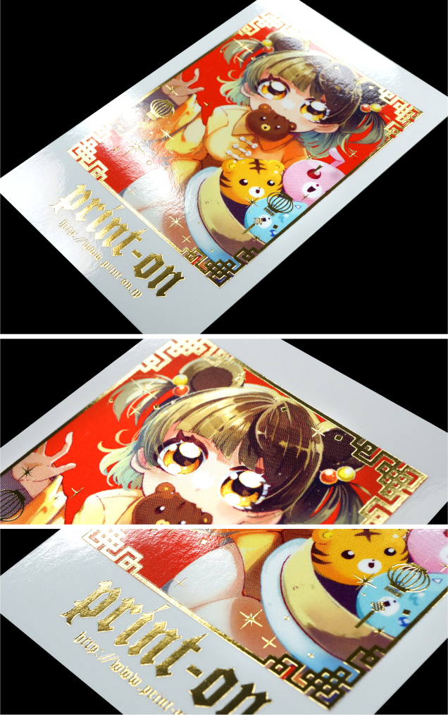 | コートカード紙220kg/フルカラーRGB印刷/クリアPP 専用オプション:箔押し加工/金 |