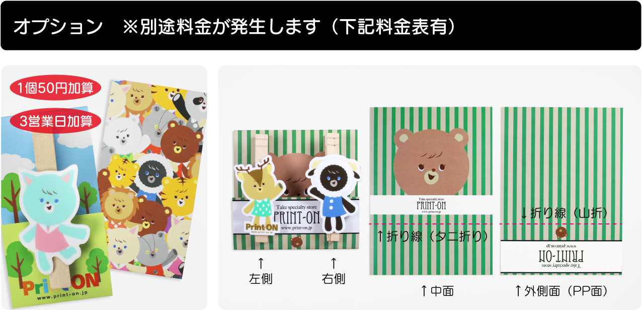 | 台紙両面印刷(表面クリアPP付き) | +3営業日 | 50 |