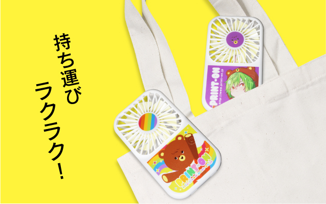 持ち運び便利な手持ち扇風機。1個から注文できます。 |