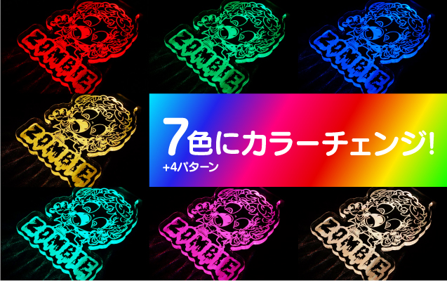 透明のアクリル板にUVインクジェット白印刷でオリジナルの光るキーホルダーが作れます。ボタンを押すと光の色が8色に変化します。 テスト用電池内蔵ですぐにご利用できます。 |