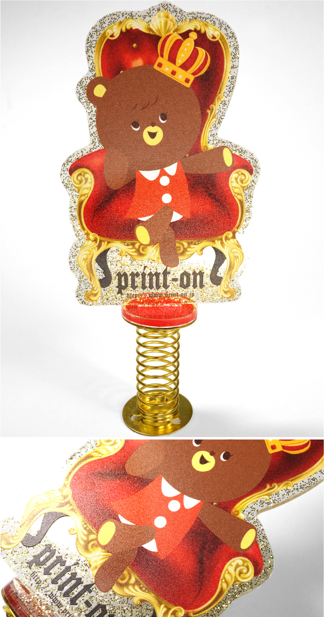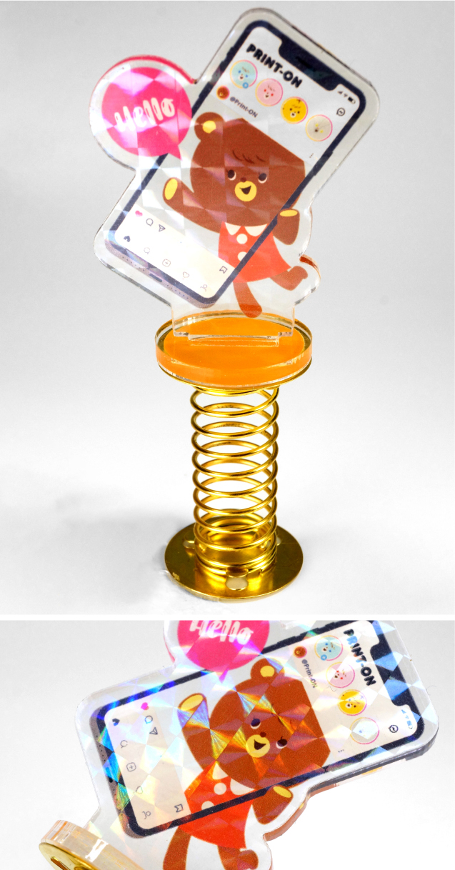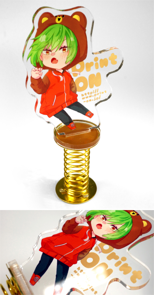 | Mサイズ/透明アクリル/フルカラー+白印刷 上部台座の色:ブラウン/スプリングの色:ゴールド |