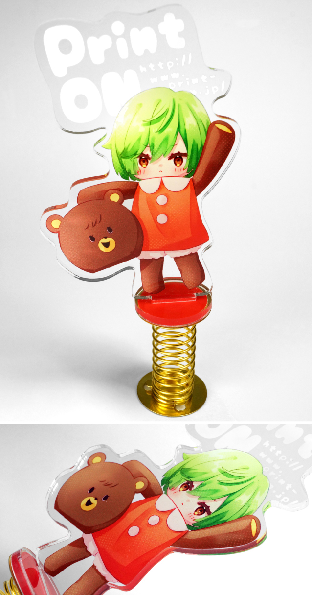 | Lサイズ/透明アクリル/フルカラー+白印刷 上部台座の色:レッド/スプリングの色:ゴールド |