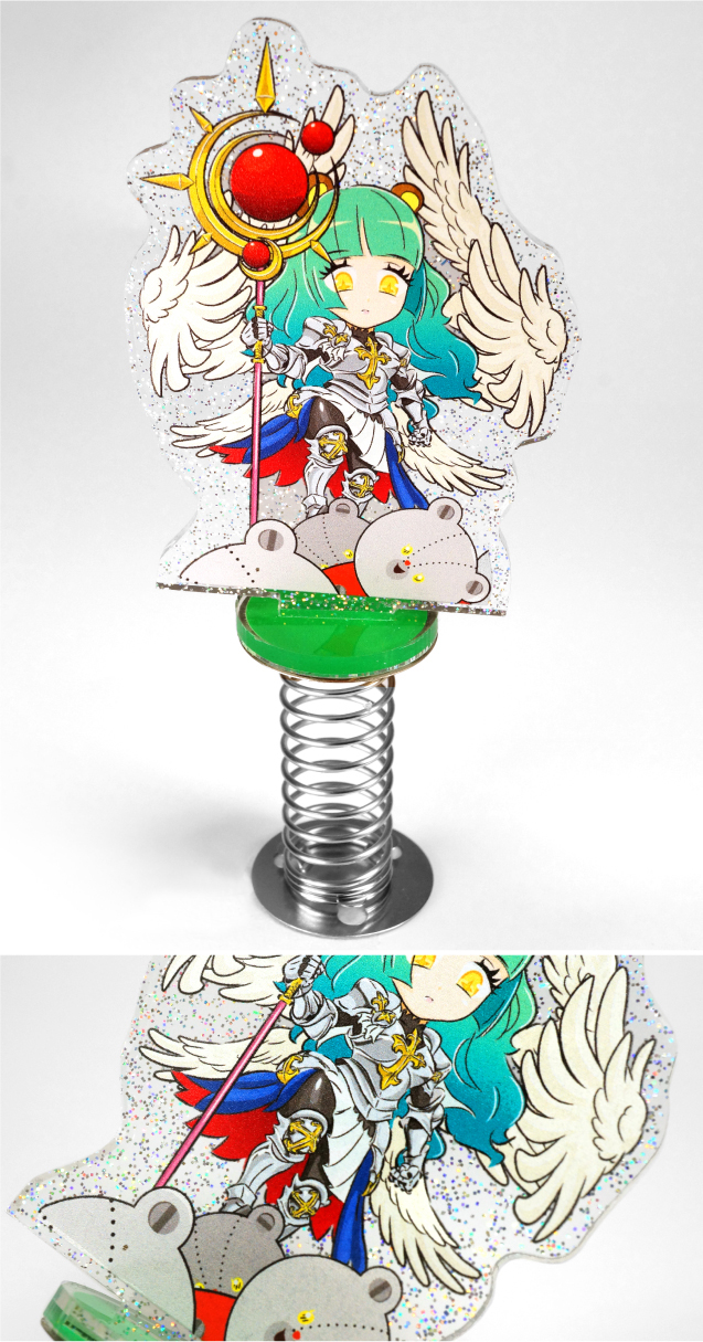 | Mサイズ/ラメアクリル ホログラム/フルカラー+白印刷 上部台座の色:グリーン/スプリングの色:シルバー |