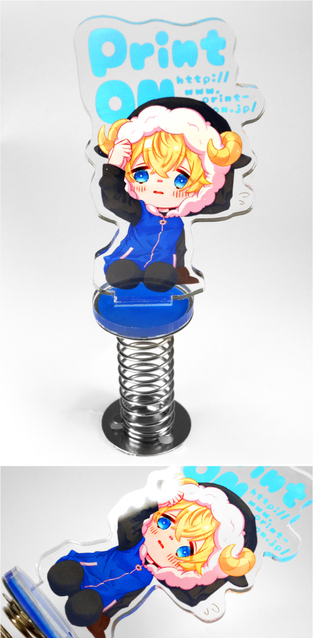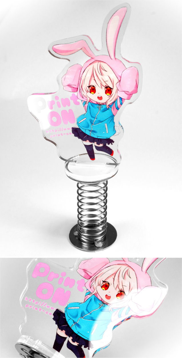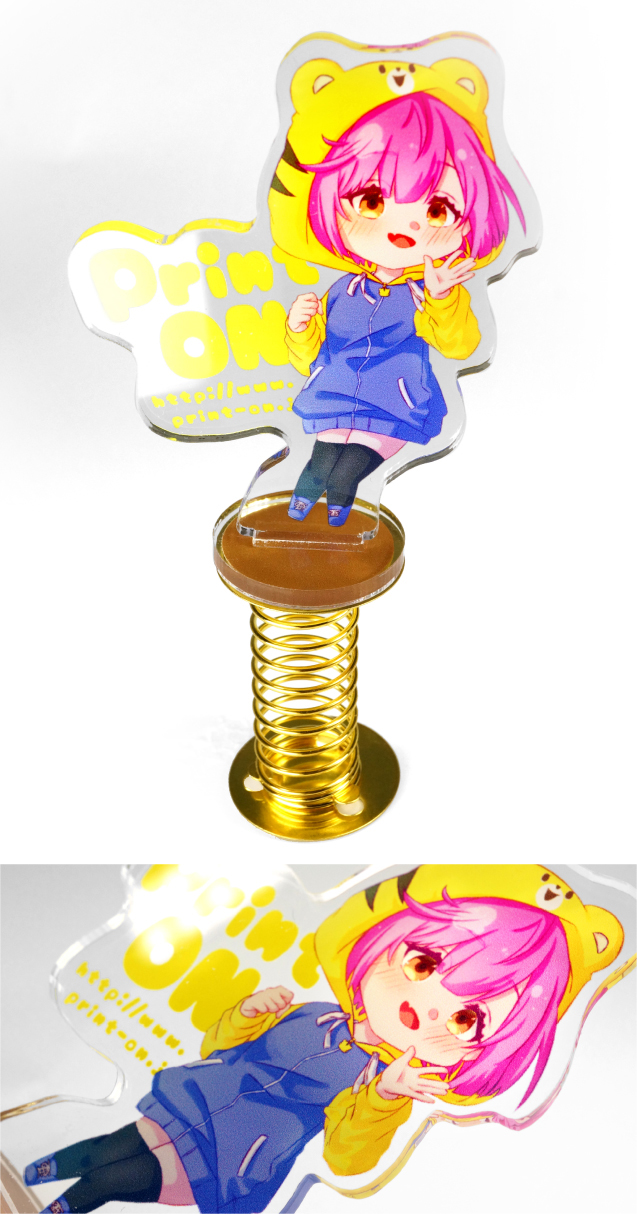 | Mサイズ/透明アクリル/フルカラー+白印刷 上部台座の色:ホワイト/スプリングの色:シルバー |