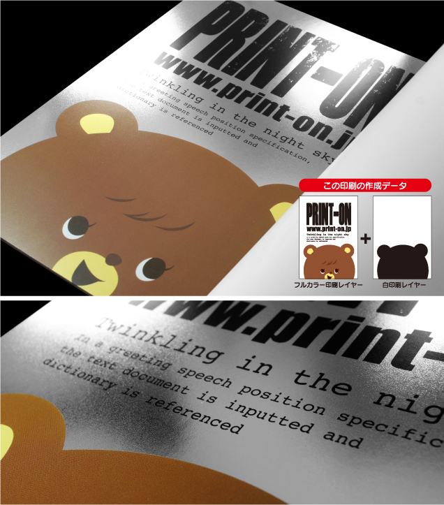 | メタルペーパーシルバー(フルカラー+白印刷) キャラクターの下地だけ白印刷を施しています。 |