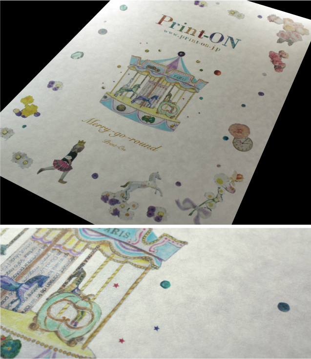 | 羊皮紙 白160kg/フルカラー(CMYK)+白印刷(デジタルオフセット印刷) 「カラーペーパーセット」でご利用可能です。 |