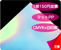 | 表紙印刷をフルカラーRGB印刷に変更できます。 マイページからご注文時に仕様選択画面で「印刷:フルカラーRGB印刷」を選択して下さい。 ※入稿データはRGBデータのままご入稿下さい。 ※メタル・ホログラムペーパーの白印刷が付いているものは、「フルカラー(CMYK)+白印刷」から 「フルカラーRGB+白印刷」への変更となります。 |