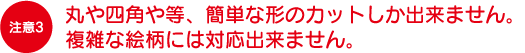 | TOP>>特殊加工>>カッティング加工>>アートカッティング加工の注意点 |