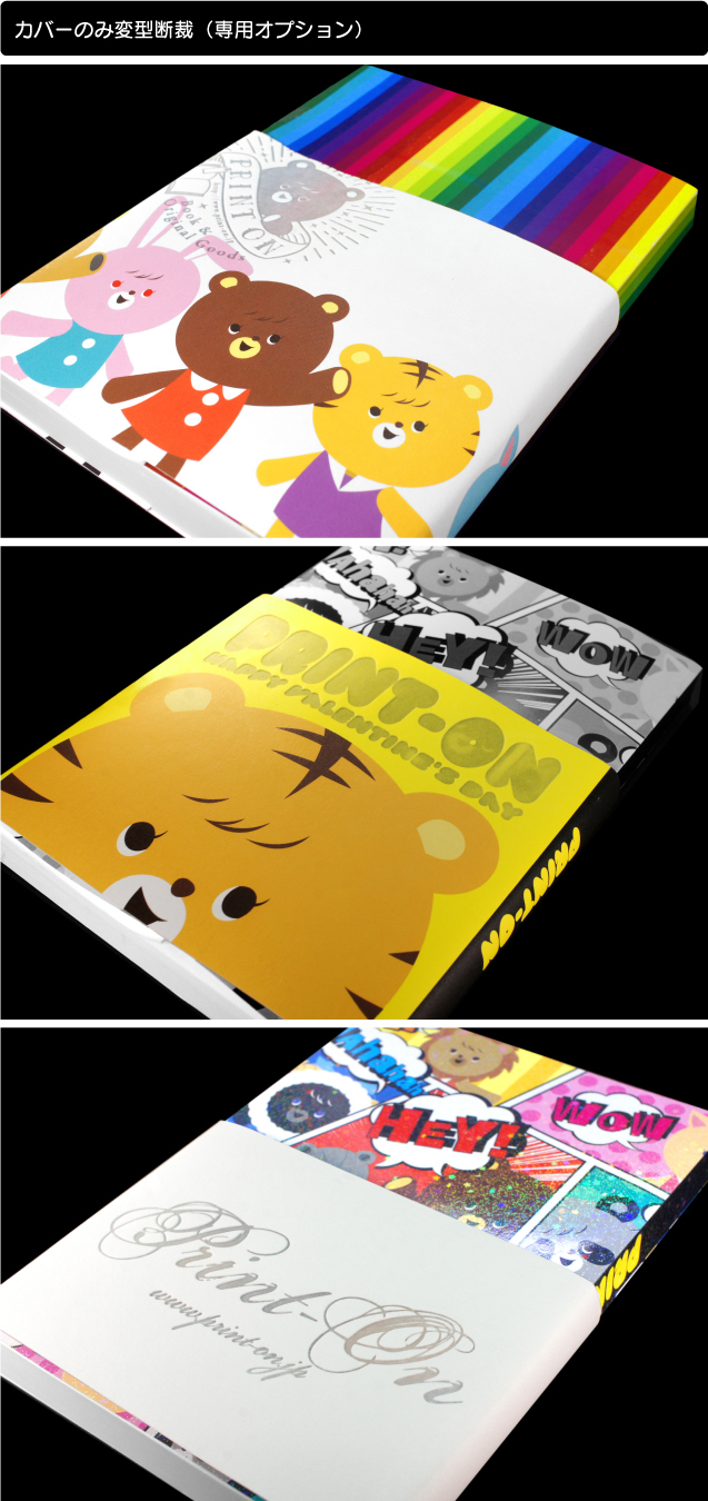 カバーのみ短く断裁することができます。短くなった部分から表紙が見えるように |